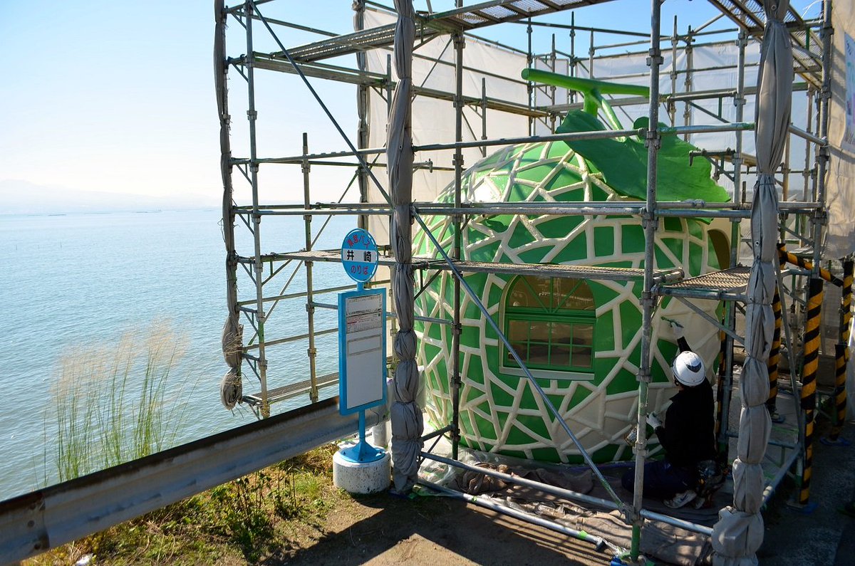 #長崎 県 #諫早 市にある #果物 の形をした「#フルーツバス停 」の塗り直しが始まりました。