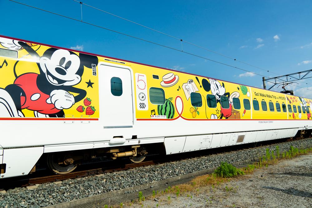 ミッキー のオリジナルアートでラッピングされた「JR九州 Waku Waku Trip 新幹線」